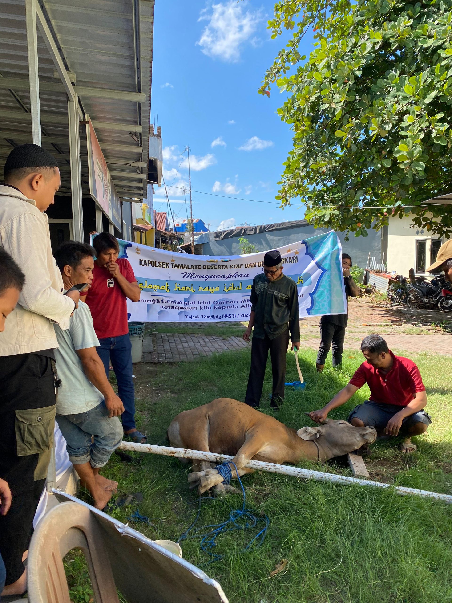 Pemotongan hewan qurban di Polsek Tamalate dilaksanakan dengan mengikuti protokol kesehatan dan prosedur yang berlaku. Setelah pemotongan, daging qurban akan didistribusikan kepada masyarakat sekitar yang membutuhkan, serta keluarga kurang mampu di wilayah Tamalate.