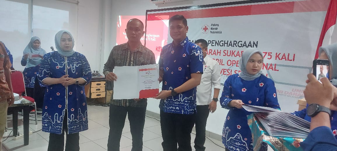MAKASSAR.DAULATRAKYAT.ID. UDD Palang Merah Indonesia (PMI) Sulawesi Selatan Adnan Purichta Ichsan YL serahkan kendaraan Operasional sekaligus mengapresiasi sejumlah pendonor khususnya yang sukses melakukan 75 kali donor darah Jumat (06/12/2024) di Aula Kantor UDD PMI Sulsel Jalan Lanto Dg Pasewang Makassar