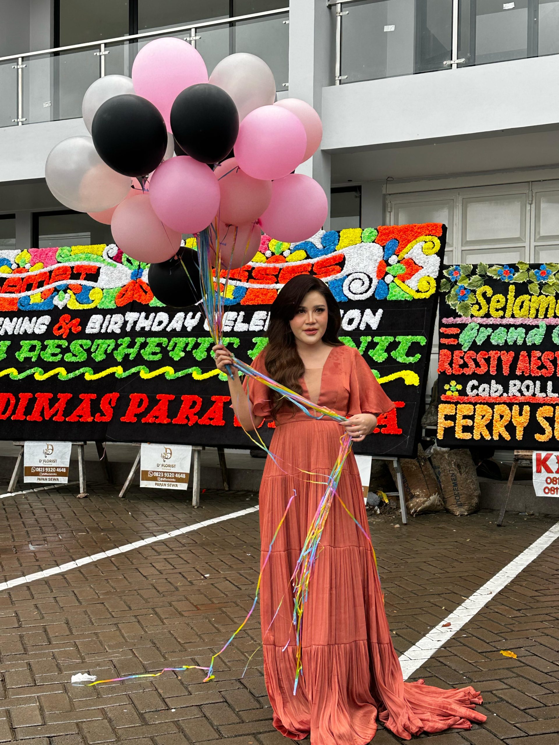 Brand Ambassador lama Ressty Aesthetic Clinic, Mami Inces, hadir menyampaikan ucapan ulang tahun sekaligus doa kesuksesan kepada dr. Resti. Ia berharap agar klinik ini terus tumbuh dan menjangkau lebih banyak pasien di masa depan.