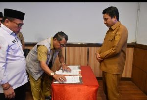 Luwu Utara, daulatrakyat id — Dalam rangka mempermudah dan mempercepat layanan kependudukan terhadap pengantin, Dinas Kependudukan dan Pencatatan Sipil (Disdukcapil) bersama Kementerian Agama (Kemenag) Kabupaten Luwu Utara sepakat menandatangani Perjanjian Kerja Sama (PKS), Selasa (11/11/2025), di Ruang Command Center Kantor Bupati.