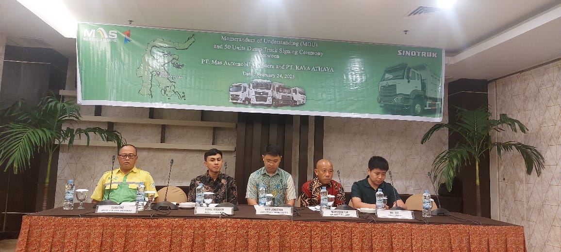 MAKASSAR DAULATRAKYAT.ID.PT Mas Automobil Sejahtera,dealer resmi Sinotruk, resmi menandatangani Memorandum of Understanding (MoU) dengan PT Rava Athaya untuk pengadaan 50 unit truk HOWO Senin (24/02/2025) di Legend Room Hotel Claro Makassar.