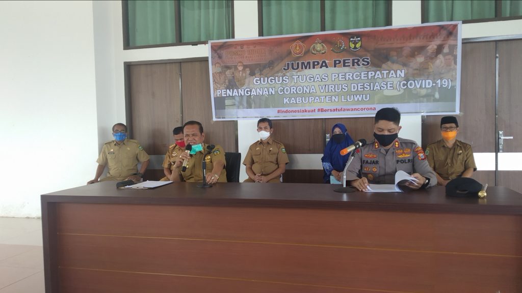 Luwu daulatrakyat.id – Dengan bertambahnya warga luwu yang terpapar Corona Virus Desiase (Covid-19) menjadi 20 orang Pemerintah kabupaten luwu serta Tim Gugus Tugas Percepatan Penanganan Covid-19 luwu, menggelar jumpa Pers bersama teman- teman wartawan di Rumah Jabatan (Rujab) Bupati kelurahan Pammanu kecamatan Belopa Utara Kabupaten luwu, senin (18/05/2020.
